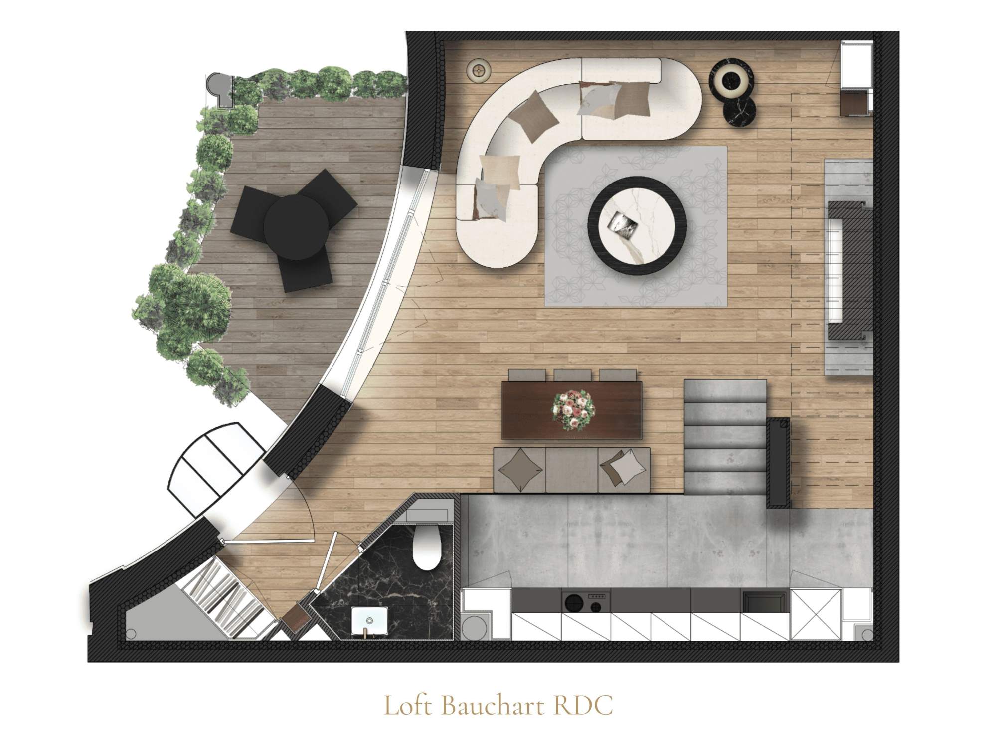 يتميز هذا اللوفت بإطلاله على حديقة هادئة تضمن الهدوء والسكينة.
