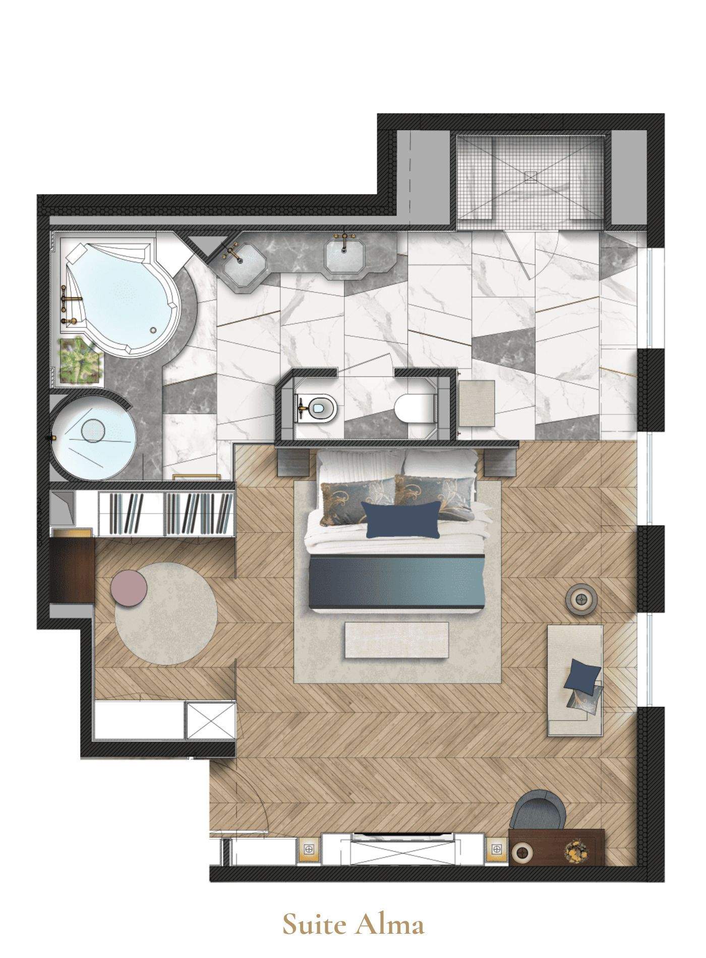 اختر الإقامة في جناح ألما واستمتع بسحر فريد تحت أسطح مباني العاصمة.