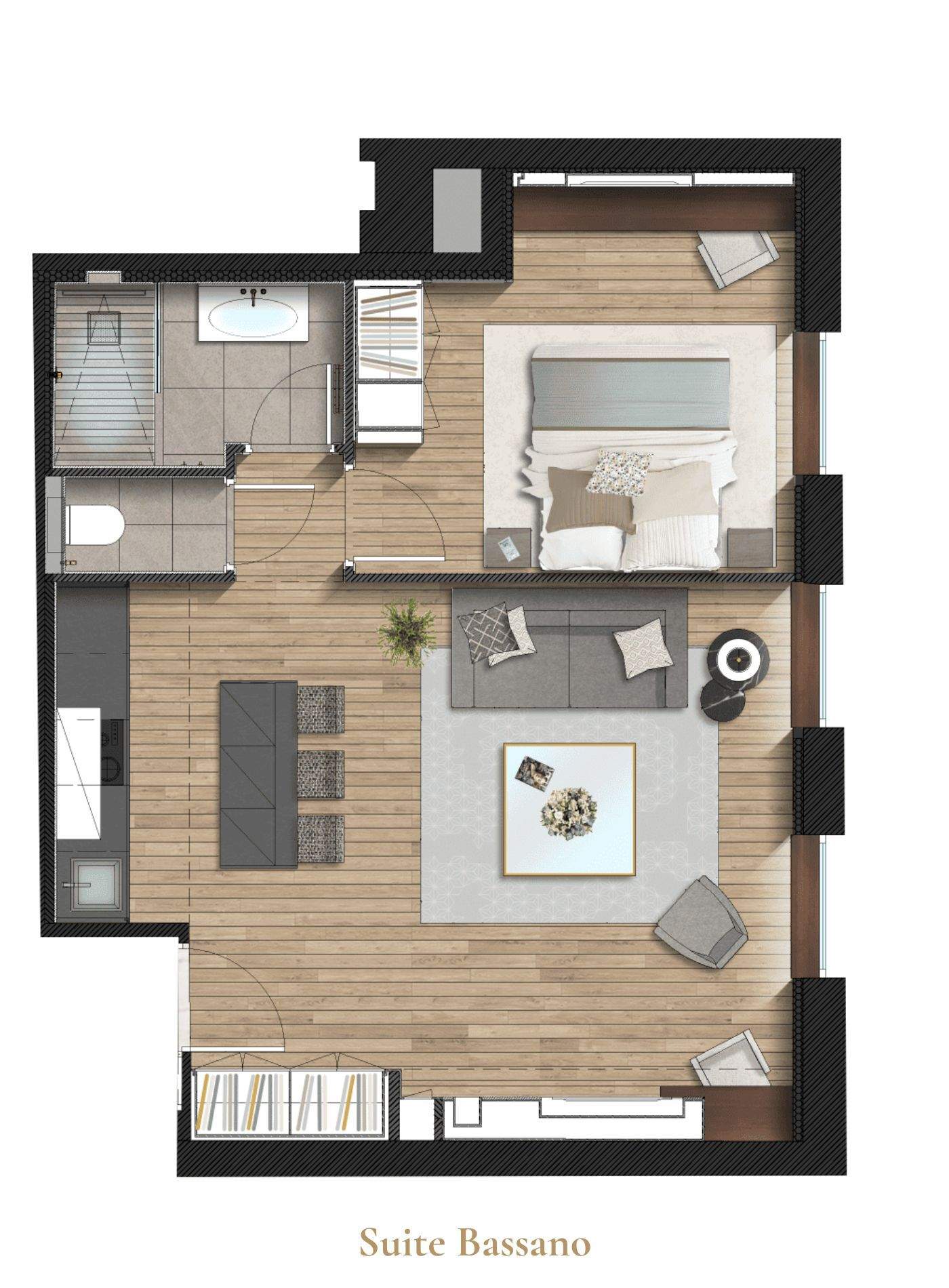 صُمم جناح باسانو كشقة باريسية مميزة، وهو يوفر أجواءً دافئة وأنيقة على مقربة من الشانزليزيه.